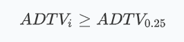 where ADTV0.25 is the 0.25 percentile of the ADTV distribution of all cryptos in the last period and ADTVi is the ADTV of a single crypto.